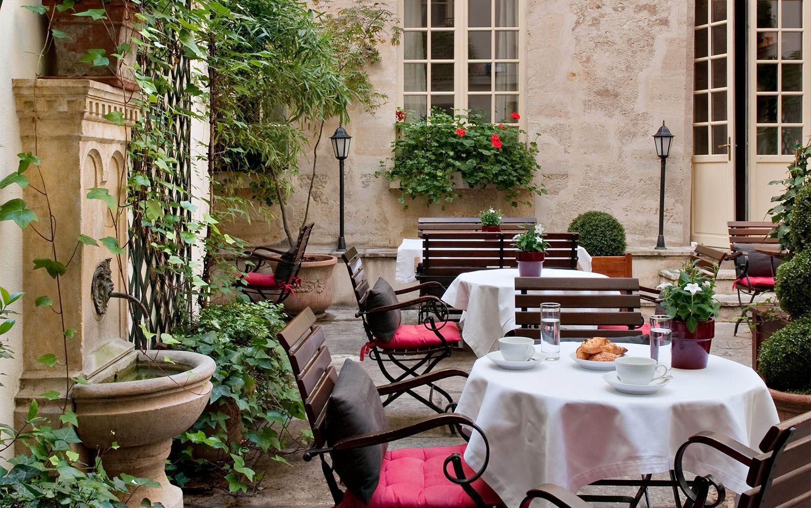 Drinker une tasse de thé devant la cheminée, ou prendre un verre au « Café Laurent », prendre l’apéritif dans le jardin en été, déguster votre petit déjeuner dans la salle à manger décorée de la plus magnifique et traditionnelle tapisserie d’Aubusson, découvrir l’art de vivre parisien et l’authenticité de sa culture.