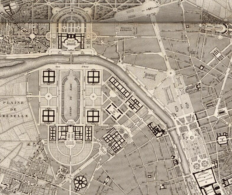 Mais l’utilité l’emporta d’abord sur la beauté et la grandeur. Le préfet Frochot réorganisa les services municipaux et le ravitaillement de la ville, il inaugura le cimetière du Père-Lachaise, sur les hauteurs de Belleville. On démolit les anciens bâtiments et les rues séparant le Louvre des Tuileries. On entoura les bras de la Seine d’un bracelet de ponts : le pont des Arts en 1803, le pont de la Cité en 1804, le pont d’Austerlitz en 1806 et le pont d’Iéna en 1813. Pour favoriser l’activité économique et sociale, on construit des kilomètres de quais : quai d’Orsay, quai des Invalides, quai des Tuileries.
